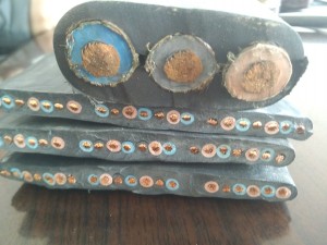 鋼芯銅導(dǎo)體軟芯結(jié)構(gòu)丁腈絕緣纏繞耐火層編織不銹鋼絲鎧裝鋼包車(chē)用組合扁電纜 |